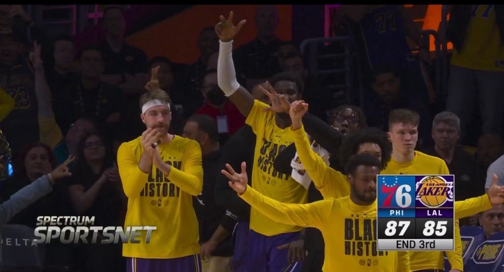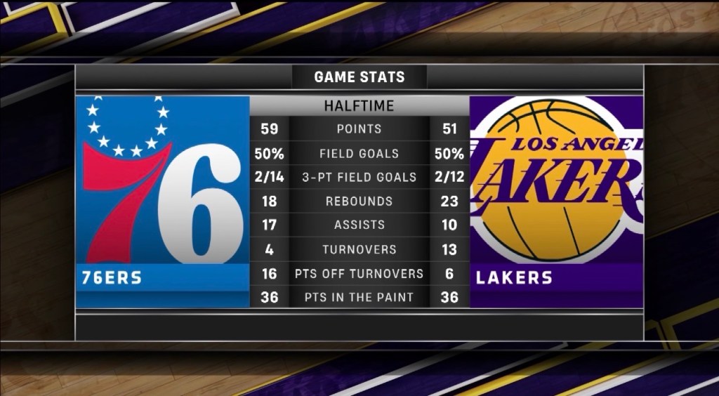 As the second quarter got underway, the Lakers would start to make some adjustments that helped them get into a groove and inch closer to the Sixers. Eventually getting them to within 4 with 8:19 to go.