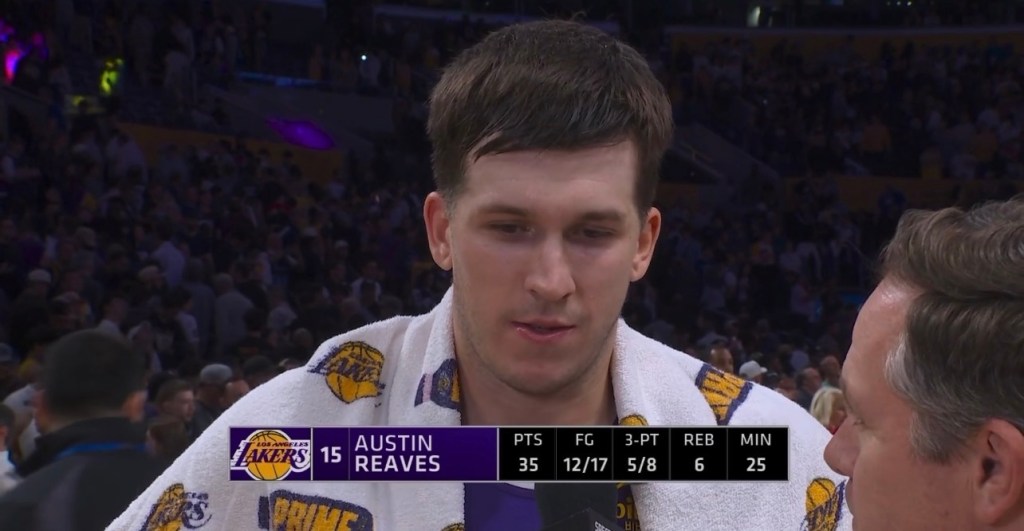 Austin Reaves: 35 Points, 6 Rebounds, 2 assists, 12/17 FG – 5/8 3 PT, 6/7 FT, 24 minutes