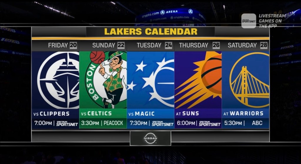 LOS ANGELES — Next 5 games for the Lakers, Credit: Spectrum SportsNet