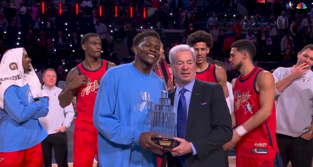 Anthony Edwards was named the Kobe Bryant All-Star MVP, earning the first All-Star MVP honor of his career after consistently setting the tone across the night’s matchups. In his postgame interview, he mentioned his hope of earning more in the future — a goal that feels attainable given both his age and trajectory.